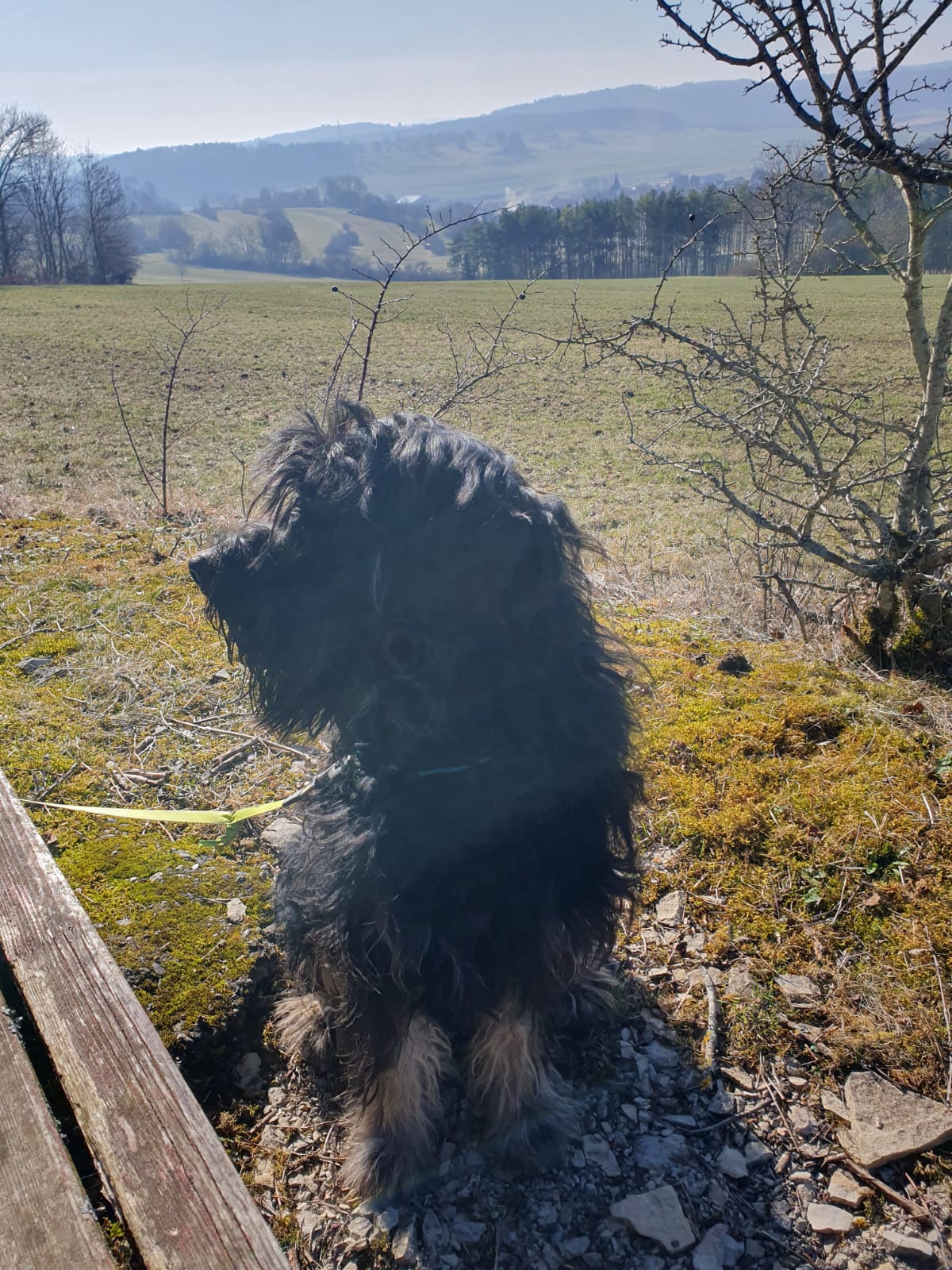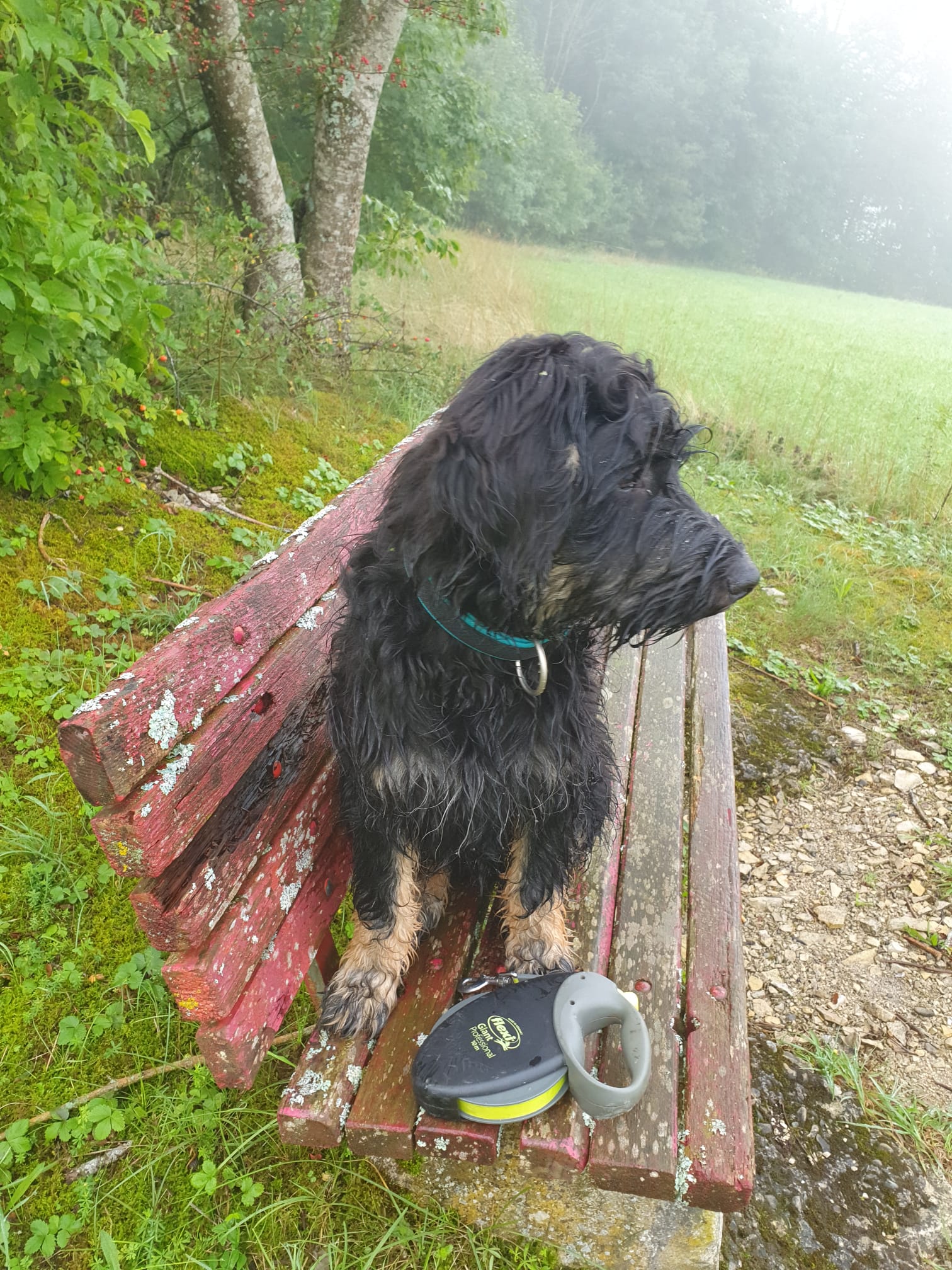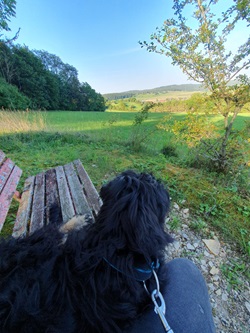 Morgendliche Rast am Schauterbänkle mit Blick Richtung Gächingen